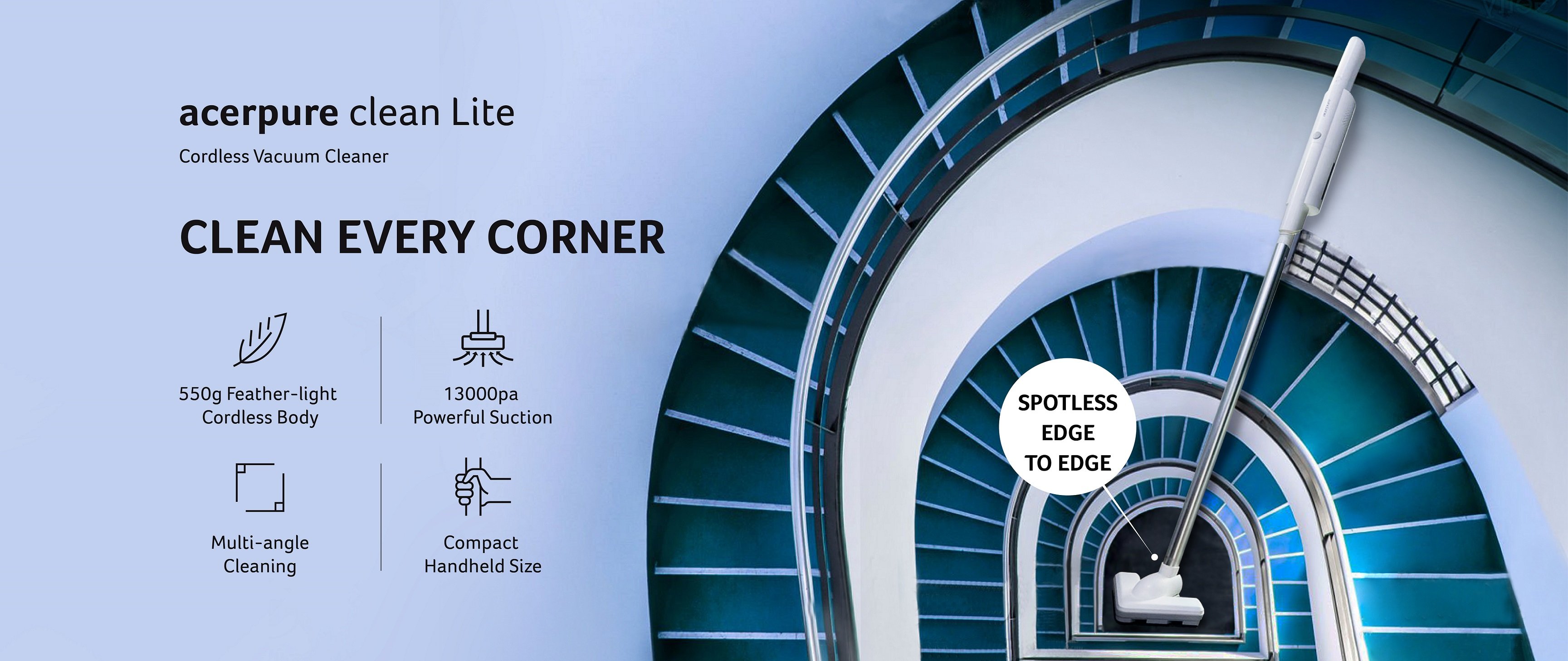 Live comfortably in a clean, healthy home effortlessly with the powerful yet feather-light Acerpure Clean Lite