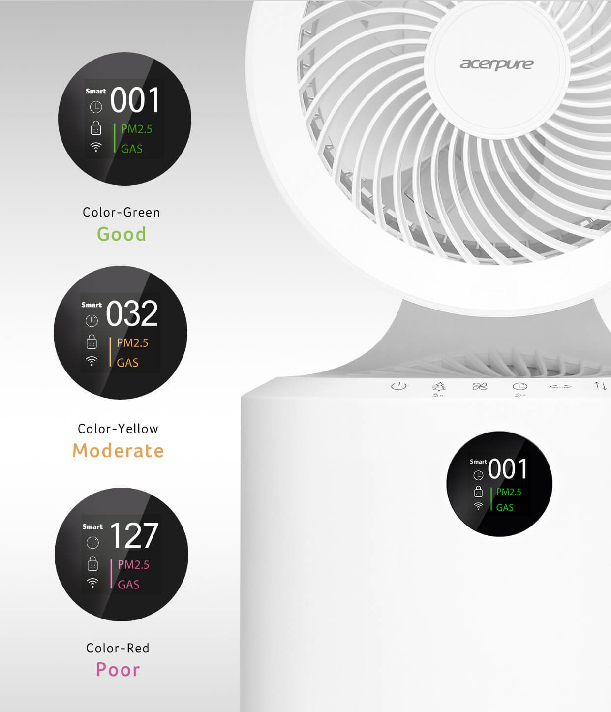 Relájate mientras el Sensor de Calidad del Aire y Gas regula de forma automática la velocidad del purificador y su LCD muestra datos sobre la calidad del aire en tiempo real.