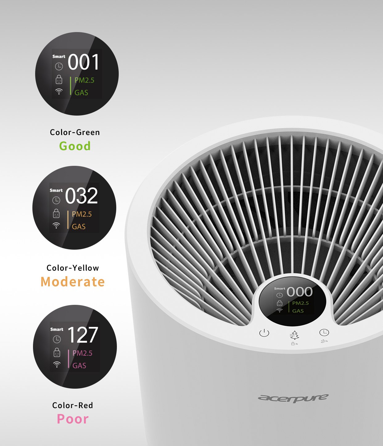 Relájate mientras el Sensor de Calidad del Aire y Gas regula de forma automática la velocidad del purificador y su LCD muestra datos sobre la calidad del aire en tiempo real.
