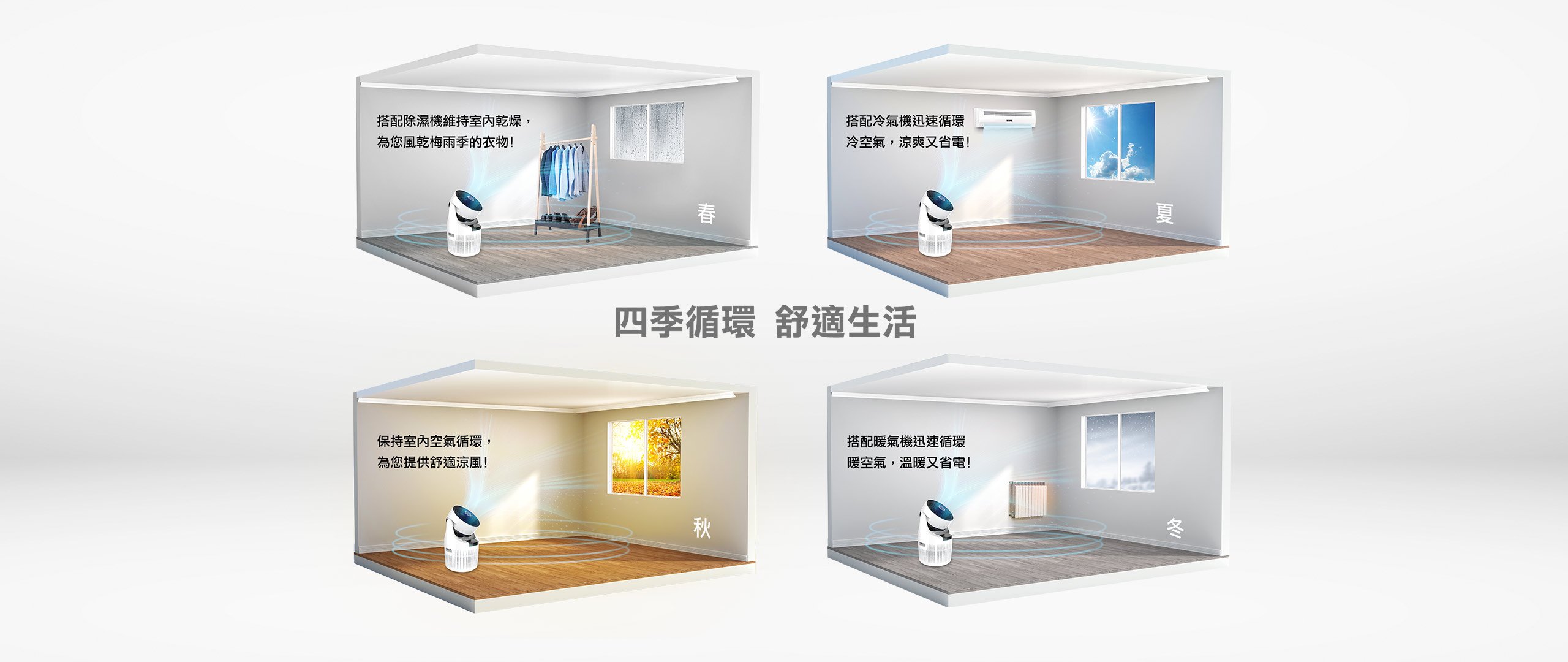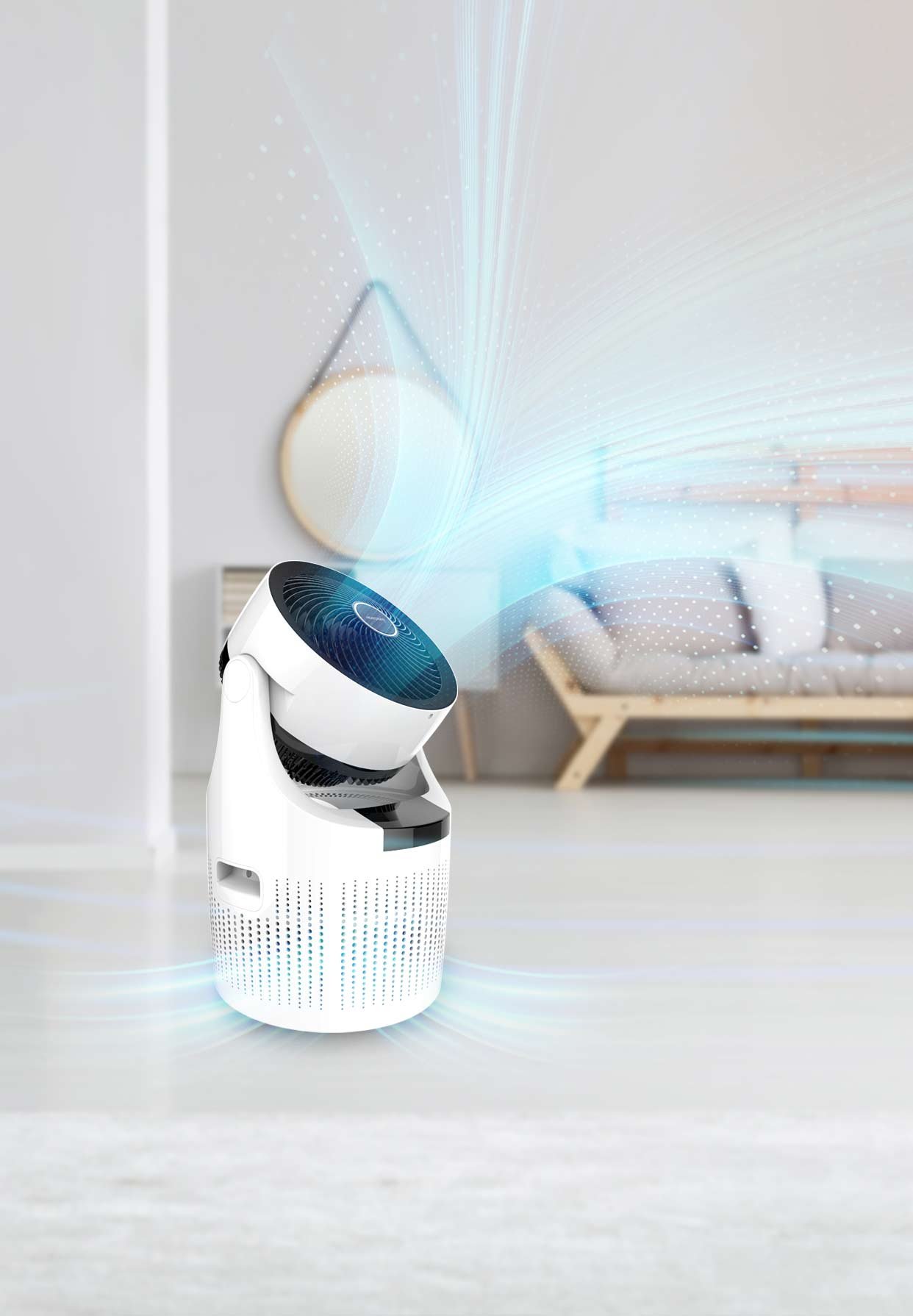 清淨機與循環扇的完美結合,讓淨化後的空氣能透過強勁的循環扇傳遞到室內空間的各個角落1。