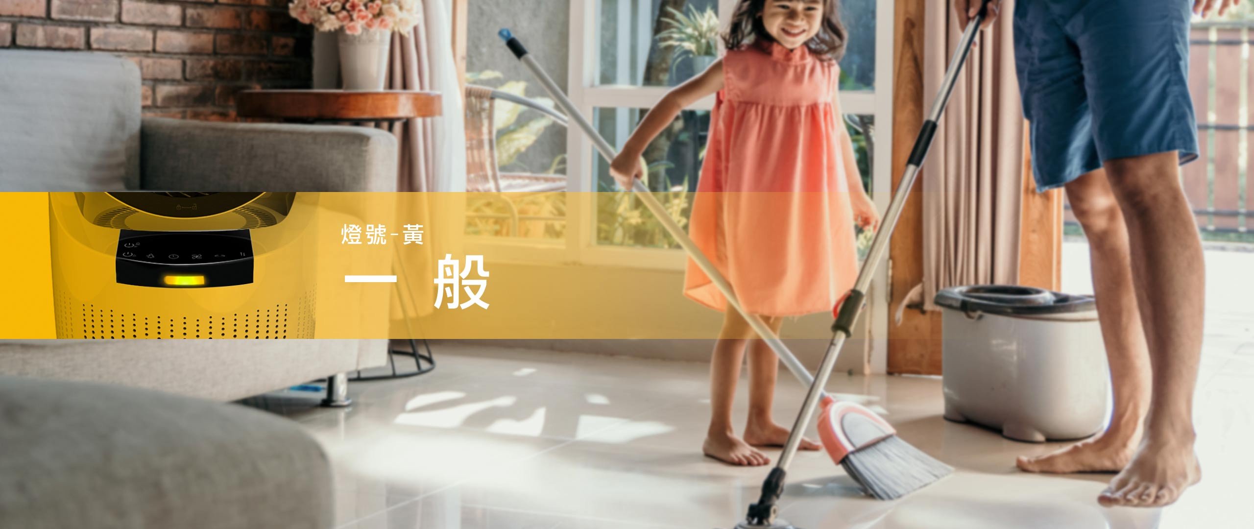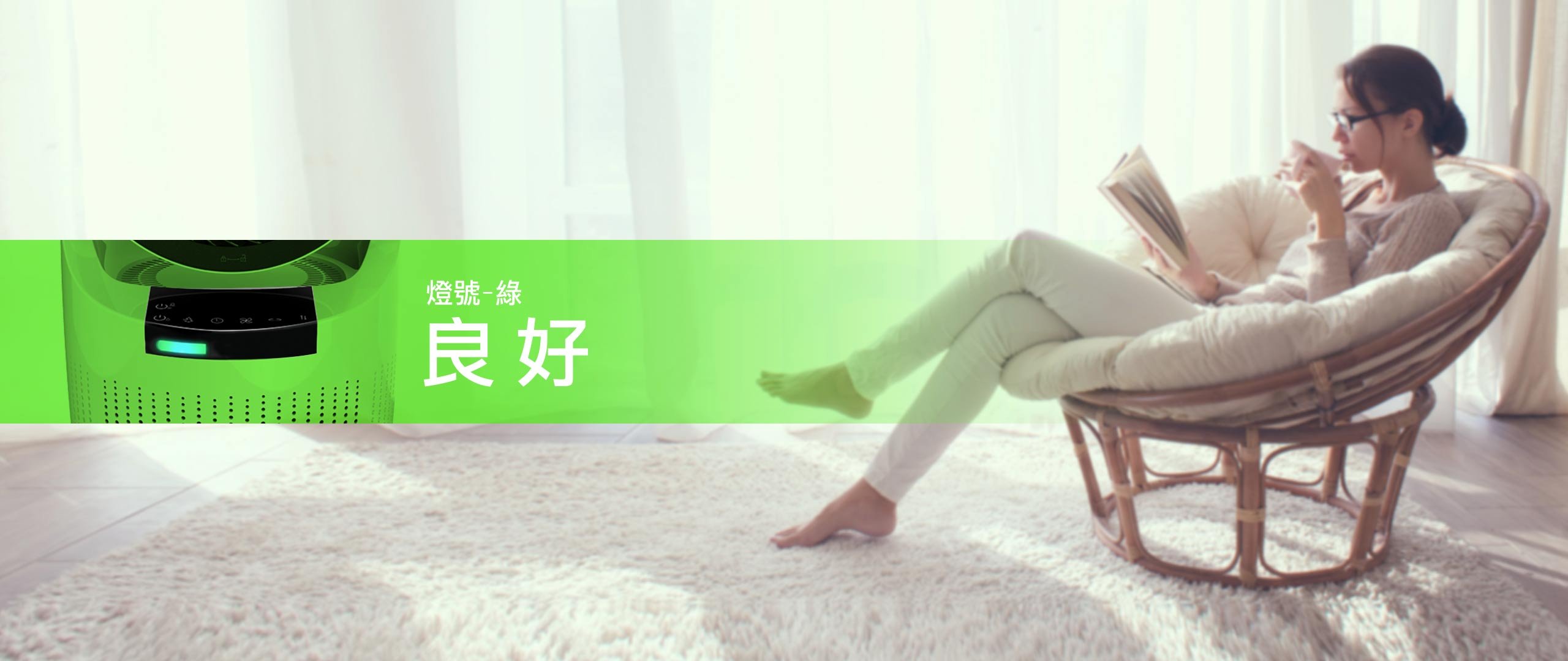 智慧偵測PM1.0懸浮微粒,自動轉換適合的清淨機運轉模式, 並透過三段燈號(綠/黃/紅)顯示空氣品質的變化。