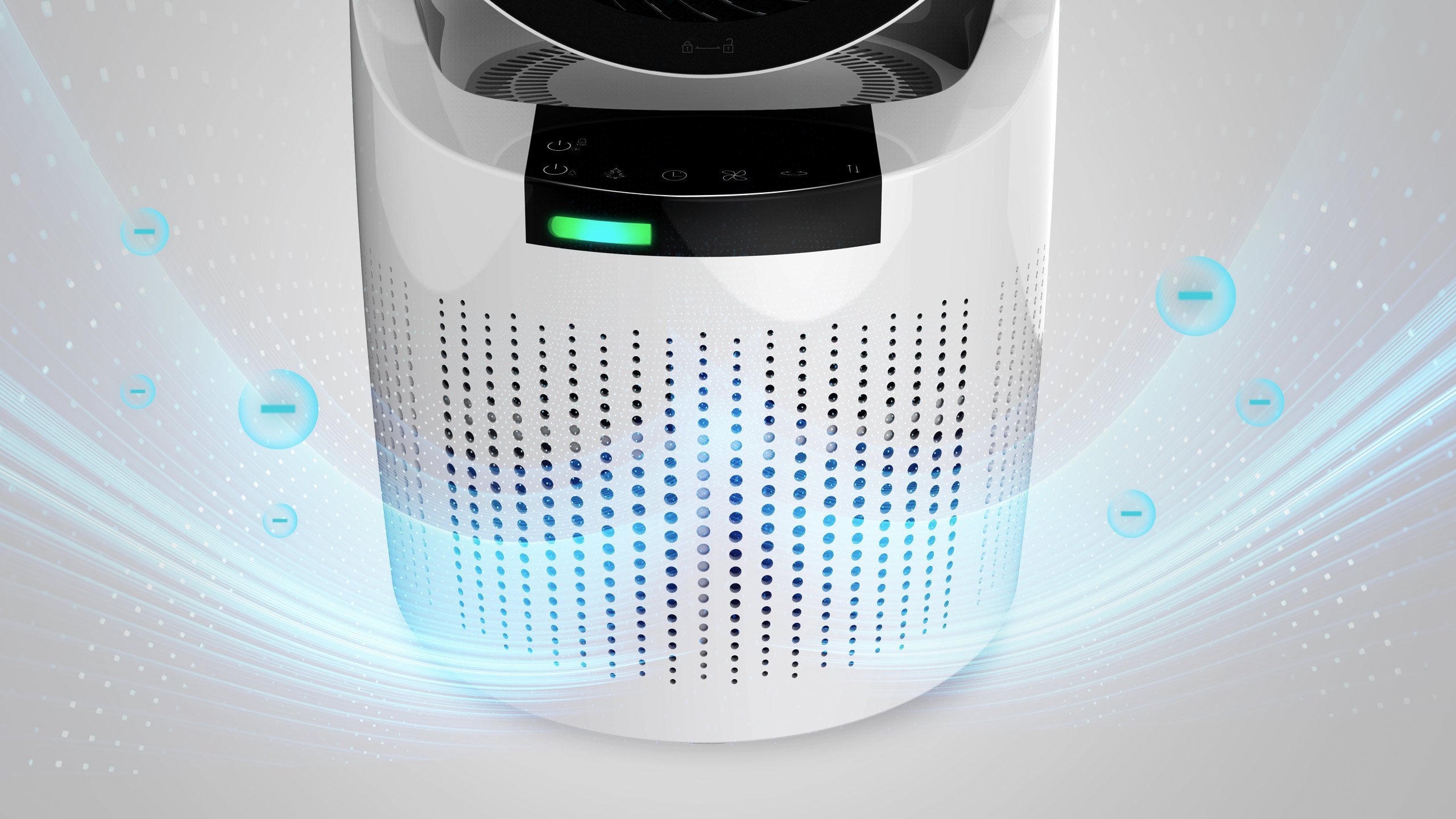 清淨機功能開啟後即主動釋放負離子,分解空氣中的有害氣體(如甲醛),以及捕捉固態微粒(如灰塵、PM 1.0),加強過濾室內空氣。