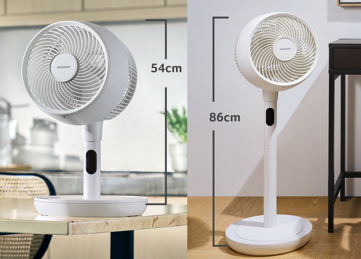 無須任何器具,1分鐘輕鬆從86公分立扇變54公分矮扇,多重使用情境,從客廳、臥房、餐廳到櫃上、桌上、地上,超越你的想像