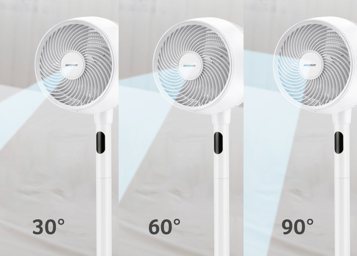 相較一般風扇,Acerpure Cozy採用多方向螺旋擺頭技術,上下90度,左右90度