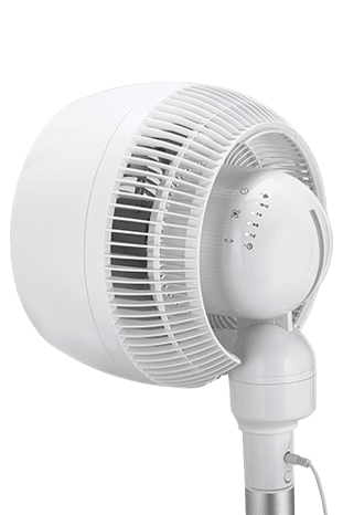 首振り角度は上下90°(手動)、左右95°(自動)。安定感のある台座がボディをしっかり支えるので、強い風量での使用時も安心です。風量調整は12段階。ターボモードを搭載しているため、ワンタッチで最大風量に切り替えることもできます。強い風量で洗濯物を早く乾かすことができ、静かな微風で扇風機としても快適にお使いいただけます。