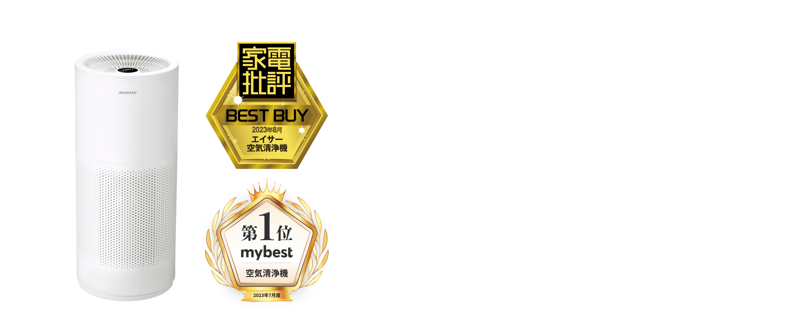 コンパクトでハイパワーな空気清浄機、Acerpure Pro。直径約25cmのシンプル&コンパクトな円筒形ボディで、360°全方向から空気を吸引。お部屋のどこにでも設置できるため、デッドスペースを作ることなく広い空間をキープできます。最大30畳(50 ㎡)*1に対応する強い風量でスピーディに空気清浄が行えるため、シーズンを通してきれいな空気に保つことができます。8畳を清浄する目安 は13分*2となります。