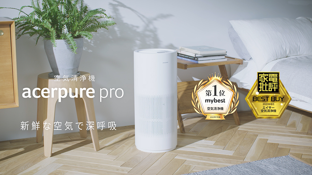 家の中に侵入してしまった花粉をいかに素早く抑制するかが大切です。Acerpureなら10分で100%、花粉をより速く抑制することが可能です。※