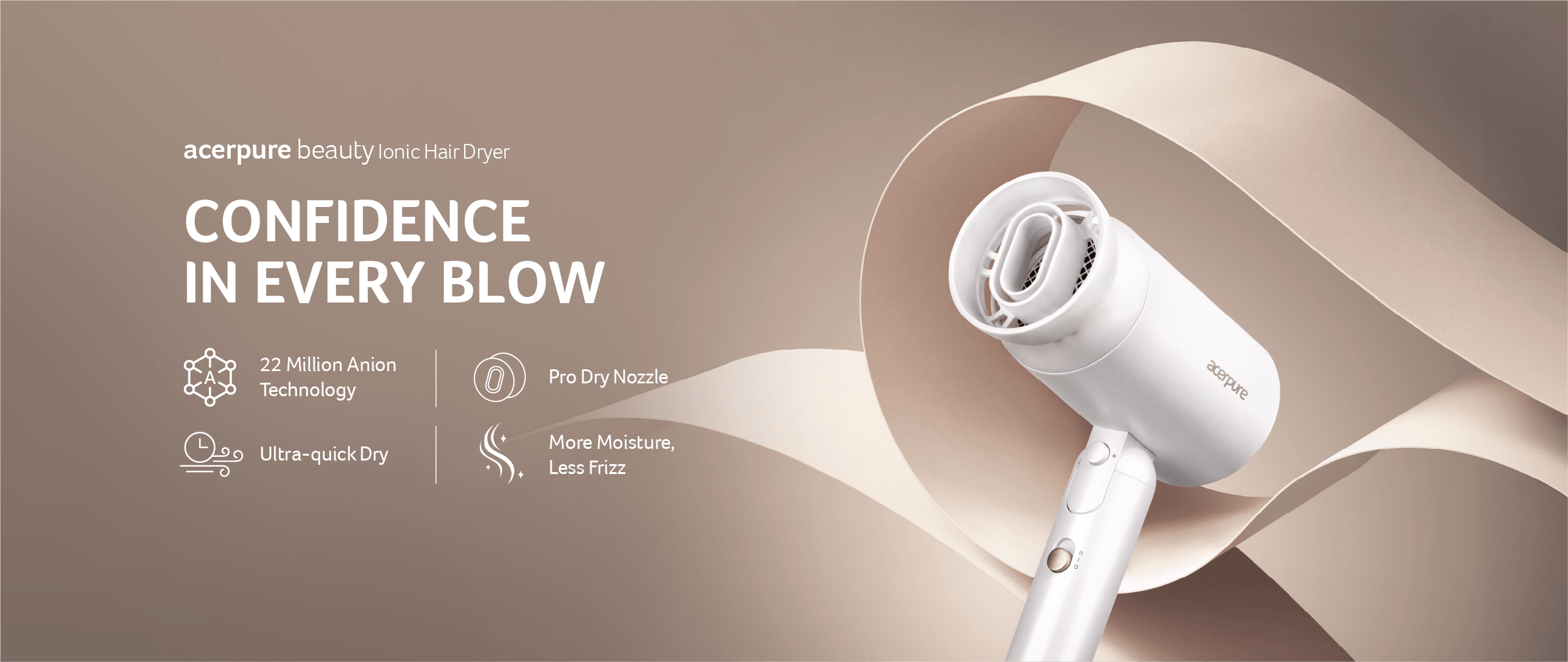 Achieve silky hair perfection effortlessly as Acerpure 22 million anion technology* dries your hair with more moisture and less frizz.