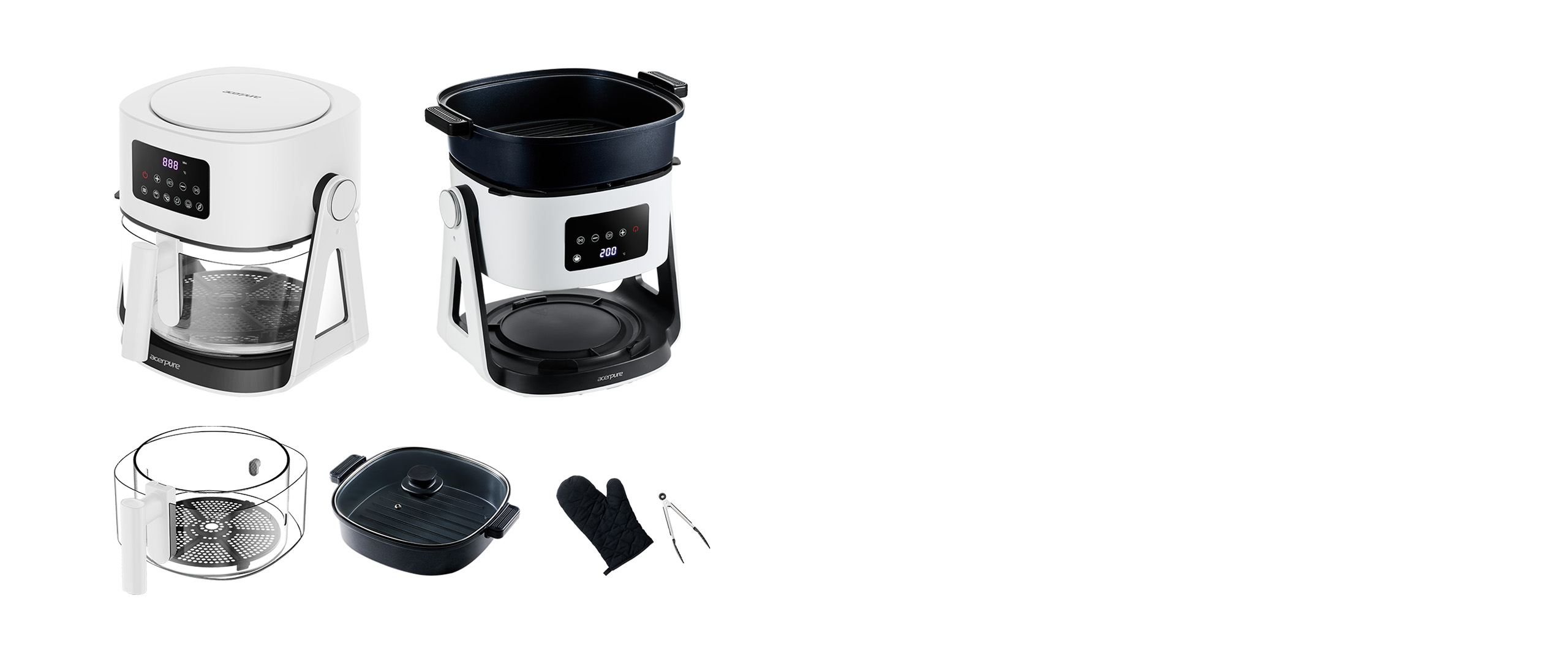 The 5 accessories include an air fryer basket, oil-drip tray, non-stick cooking pot, tongs, and heat-resistant gloves, providing everything you need for cooking. Even with limited space, you can create your own culinary world with unlimited imaginations.