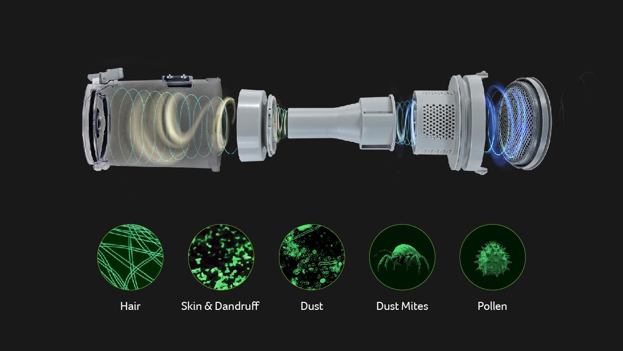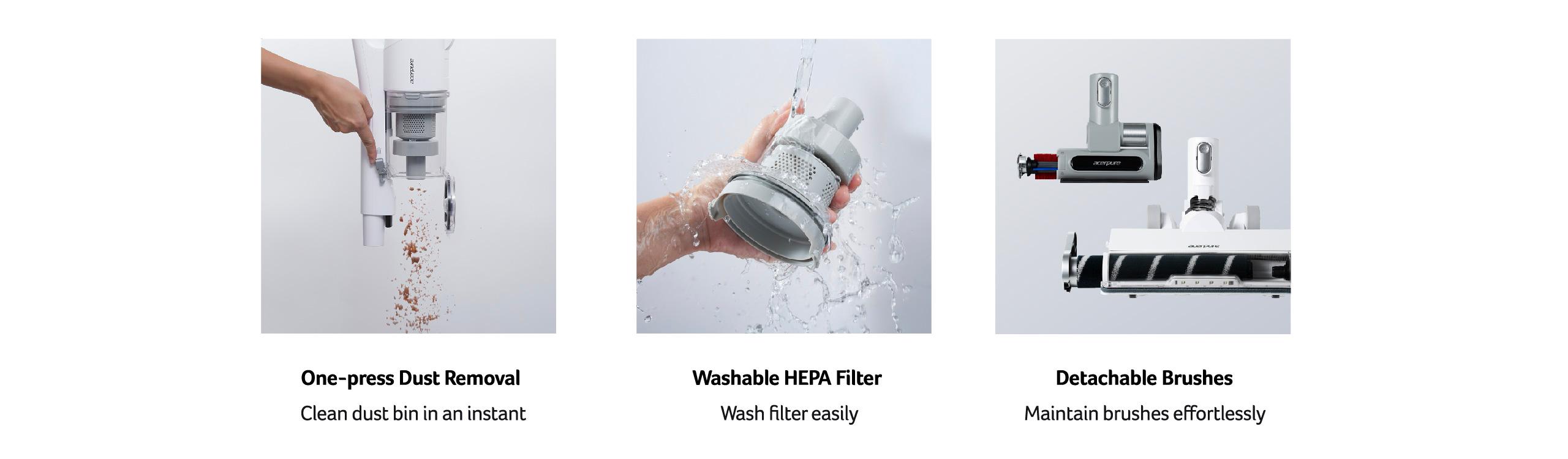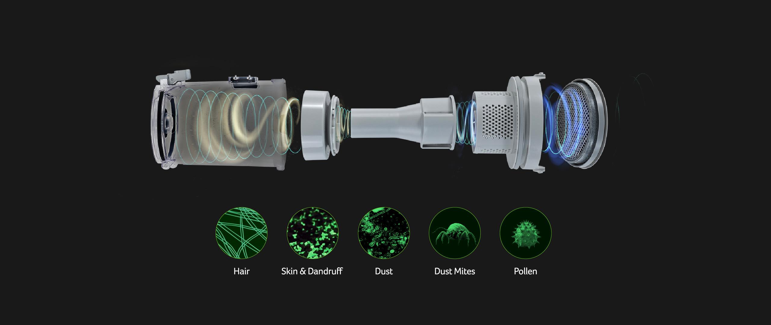 system that traps dust, allergens and particles. It also comes with a washable HEPA filter.