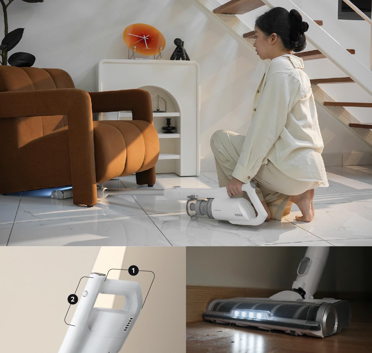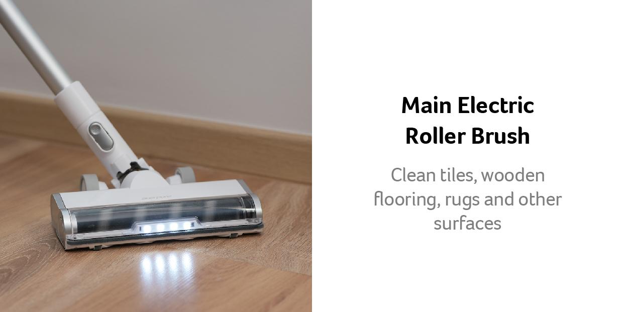 glide across surfaces or change directions. With 4 built-in LED lights on the main brush that illuminate your path,