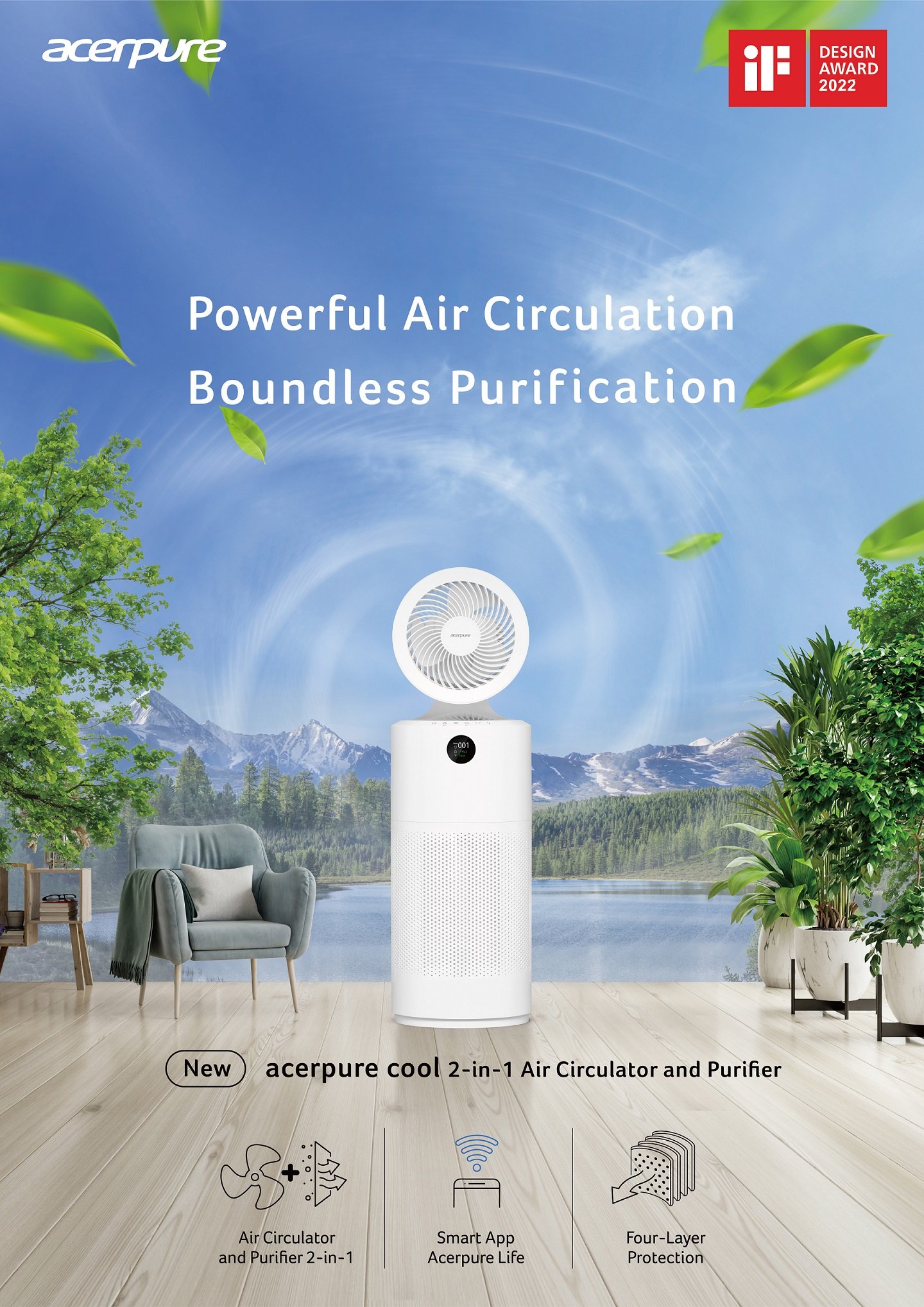 Dzięki połączeniu oczyszczacza i cyrkulatora powietrza Acerpure Cool zapewnia świeże, przefiltrowane powietrze w całym domu