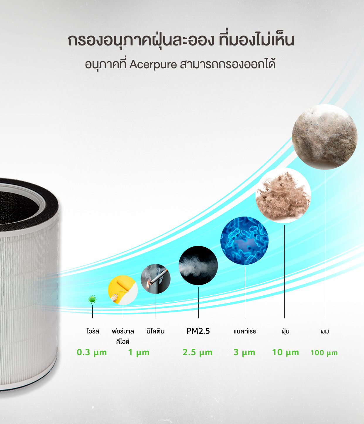 อนุภาคที่ Acerpure สามารถกรองออกได้