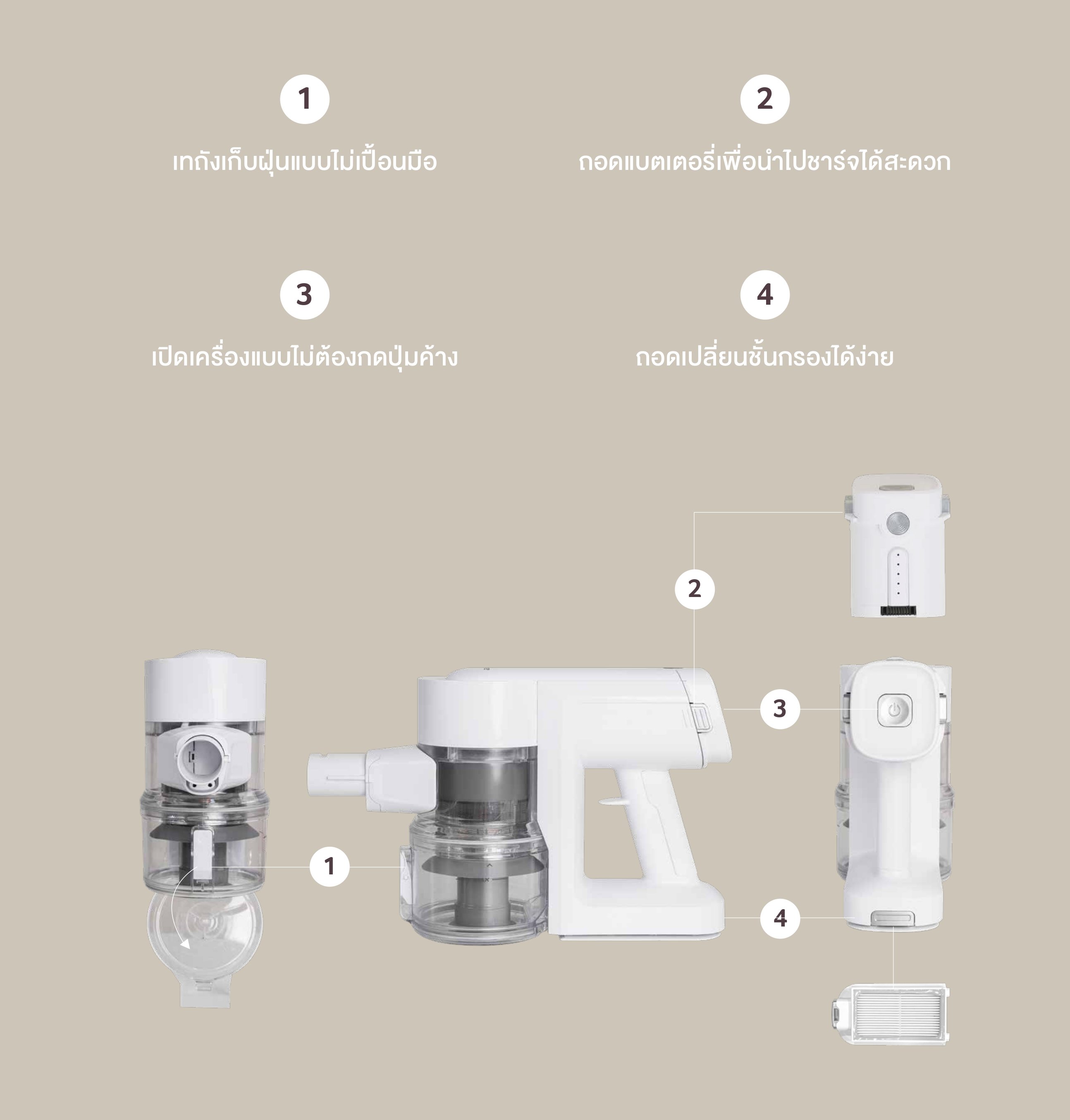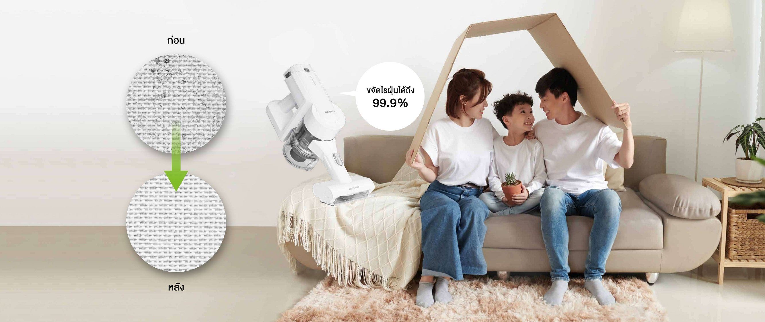 ดูดฝุ่นได้สะอาดโดยไม่ต้องปาดเหงื่อ ตัวเครื่องแบบไร้สายและเบาเพียง 1.5 กก. ช่วยเปลี่ยนงานบ้านให้เป็นเรื่องสนุกได้ในพริบตา