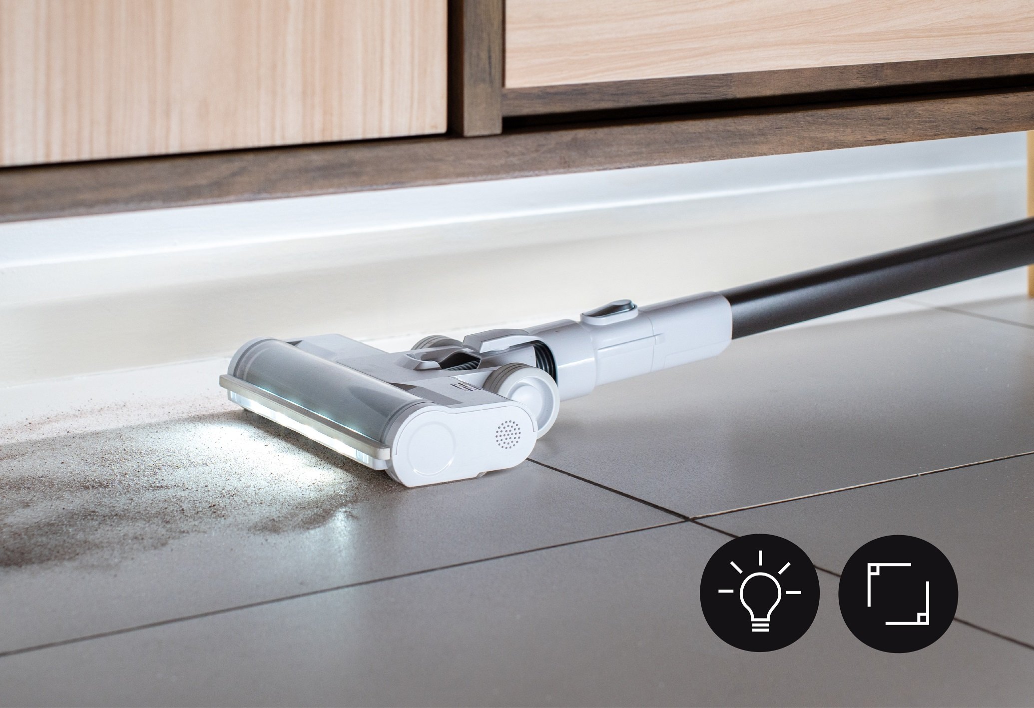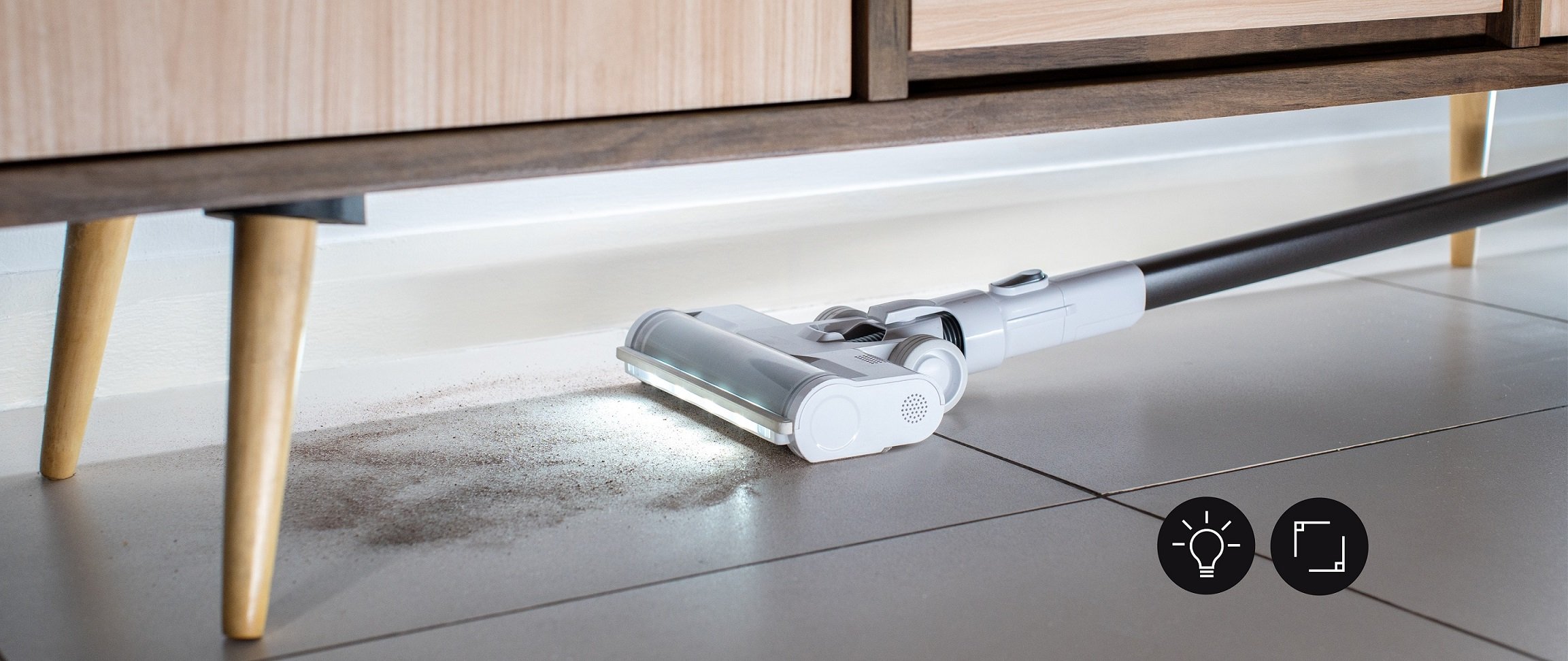 ดูดฝุ่นใต้โต๊ะหรือซอกเตียงในที่มืดได้สะดวกด้วยไฟ LED ในตัว 4 ดวงที่ช่วยส่องสว่างให้คุณเห็นฝุ่นอย่างชัดเจน