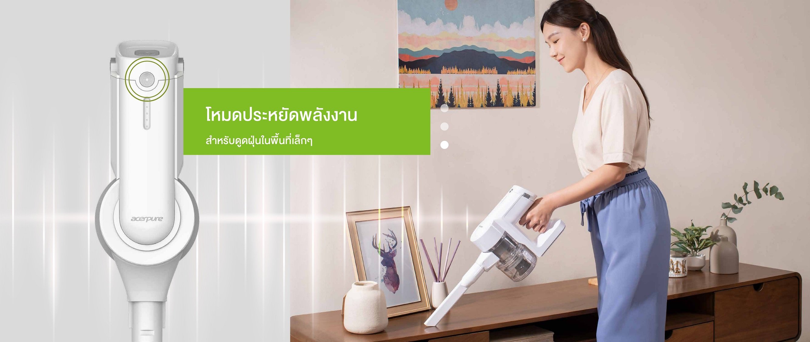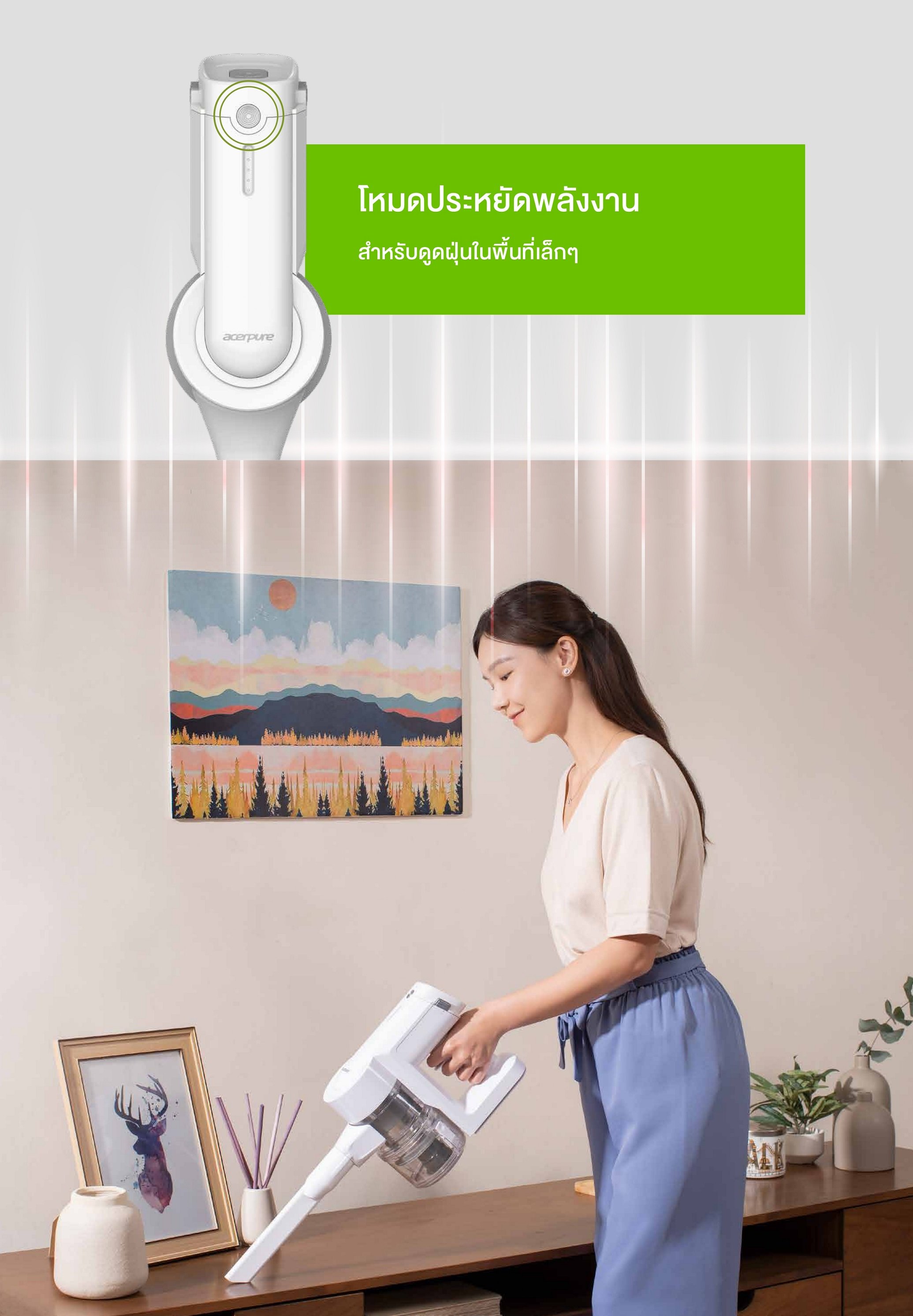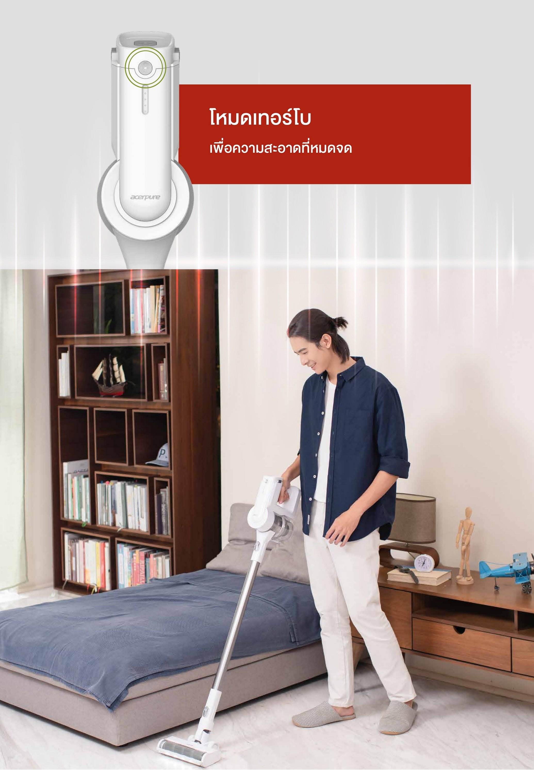 แบตเตอรี่ความจุสูงที่ให้คุณดูดฝุ่นต่อเนื่องได้ถึง 60 นาที และใช้เวลาชาร์จ Acerpure Clean จนเต็มเพียง 3 ชั่วโมง