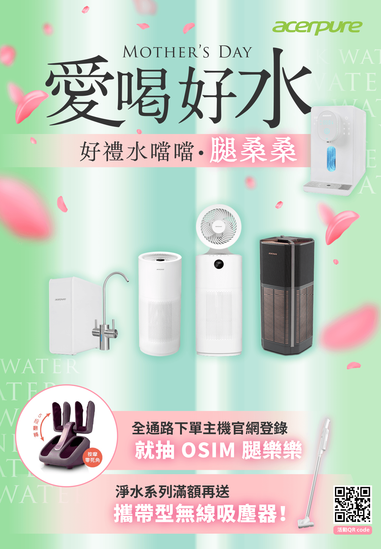 於指定活動期間內,購買Acerpure全系列主機(不含濾網、濾芯等耗材),並至Acerpure官網活動頁成功登錄者,即享