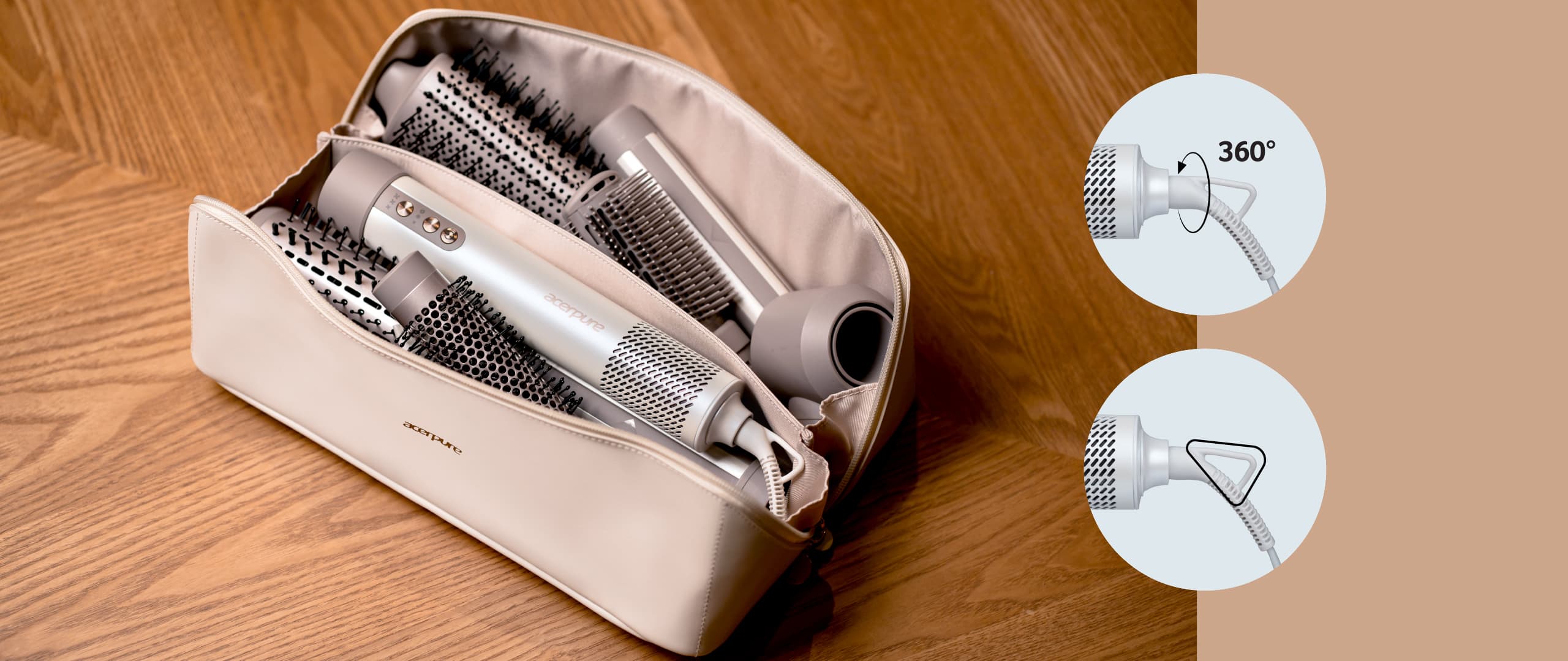 不需要額外加購!仙女棒吹風機隨機附贈精美收納包,在家好整理,出外輕鬆收,美美造型跟著走!360度掛勾設計,收掛都貼心。