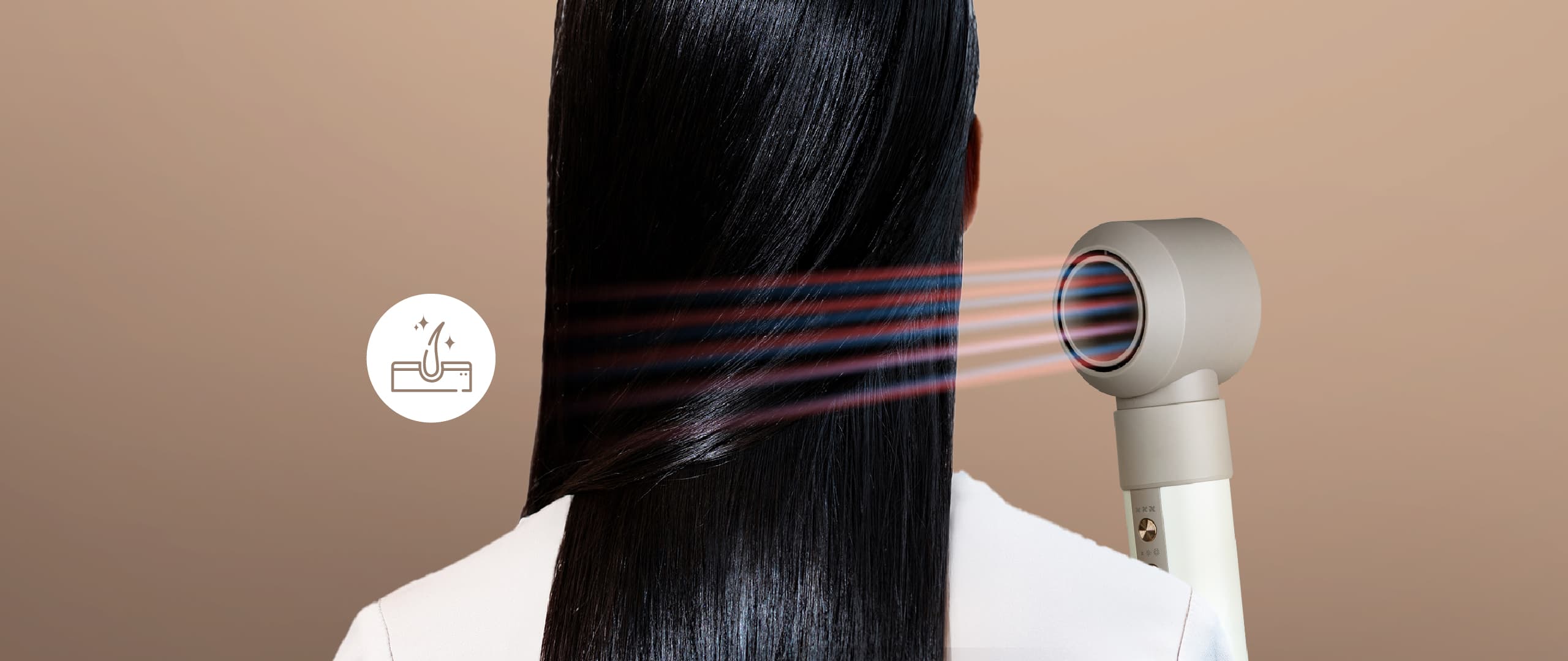 「AI護髮模式」不僅以氣流取代高溫,且具備冷熱交替出風,宛如髮型設計師親臨現場,給你冷熱交替的吹髮呵護,防止頭髮過熱且同時有效塑型。