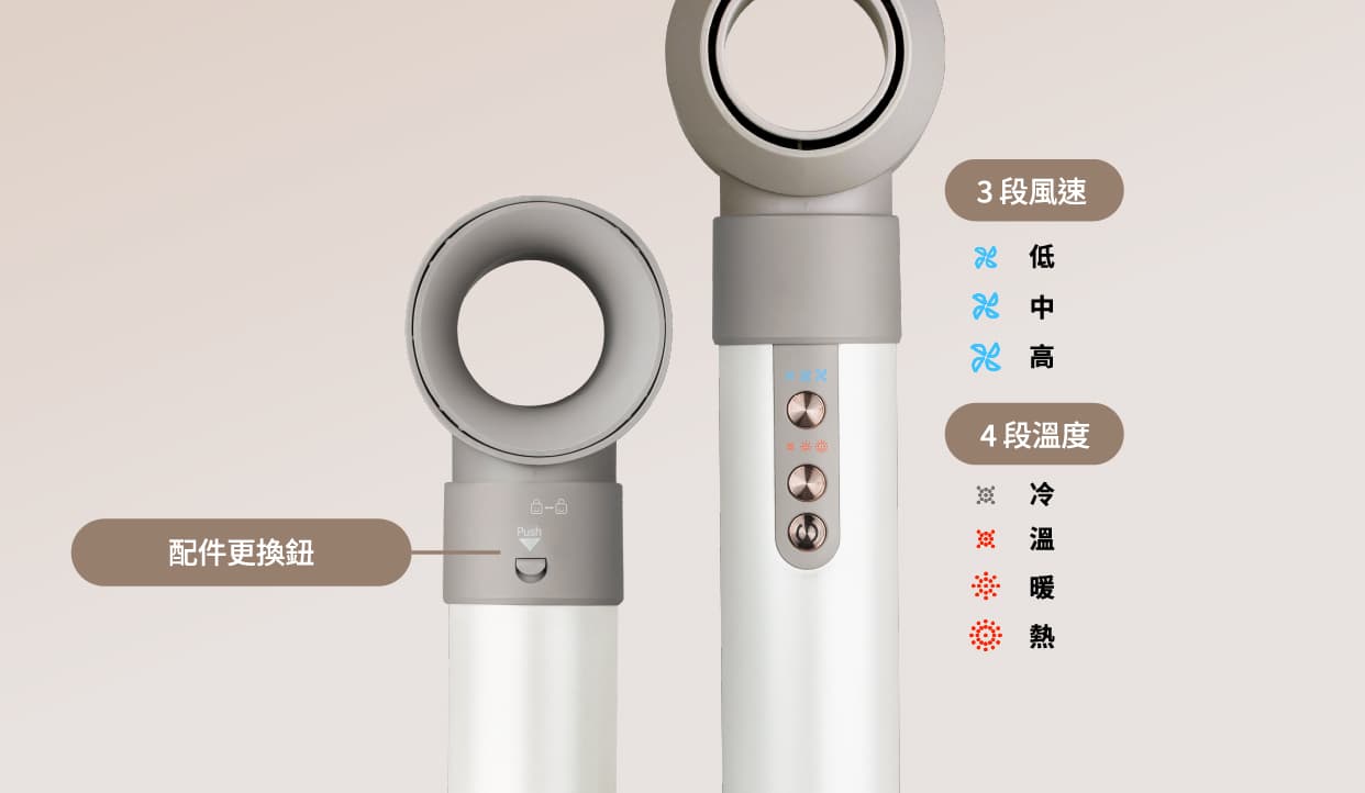 藕色配件與質感珍珠白機身,輕、速、美,讓你有氣質地盡情享受吹髮時刻