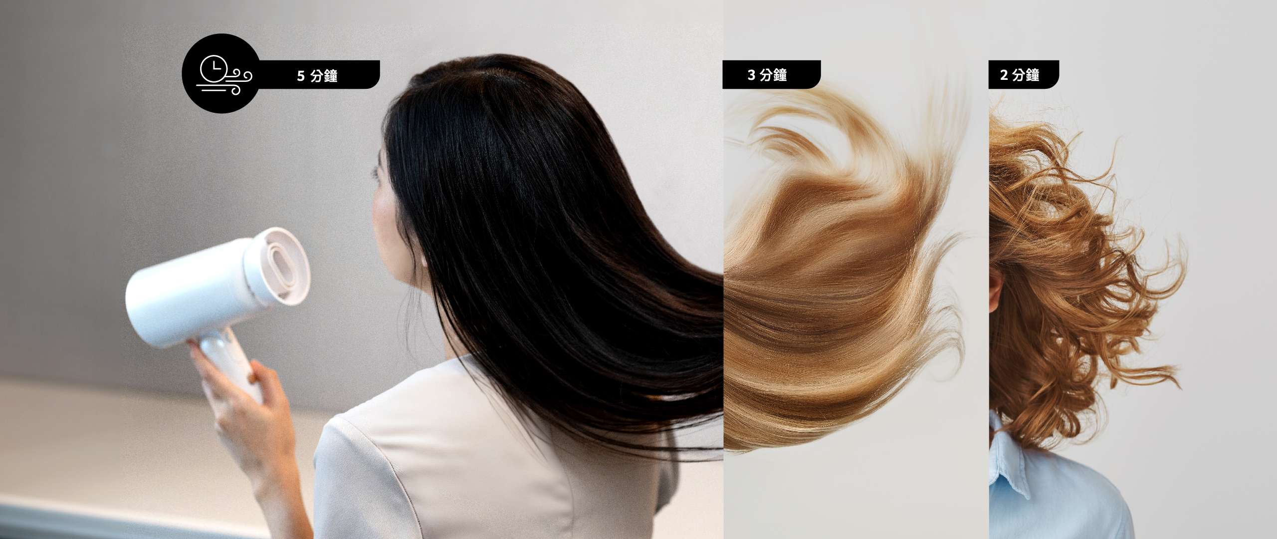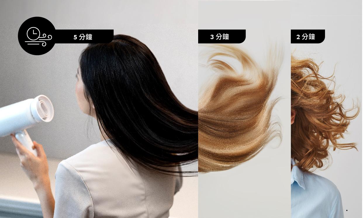 搭載 1100W 高功率和獨家馬達設計,5 分鐘* 快速乾髮,輕鬆打造完美髮型