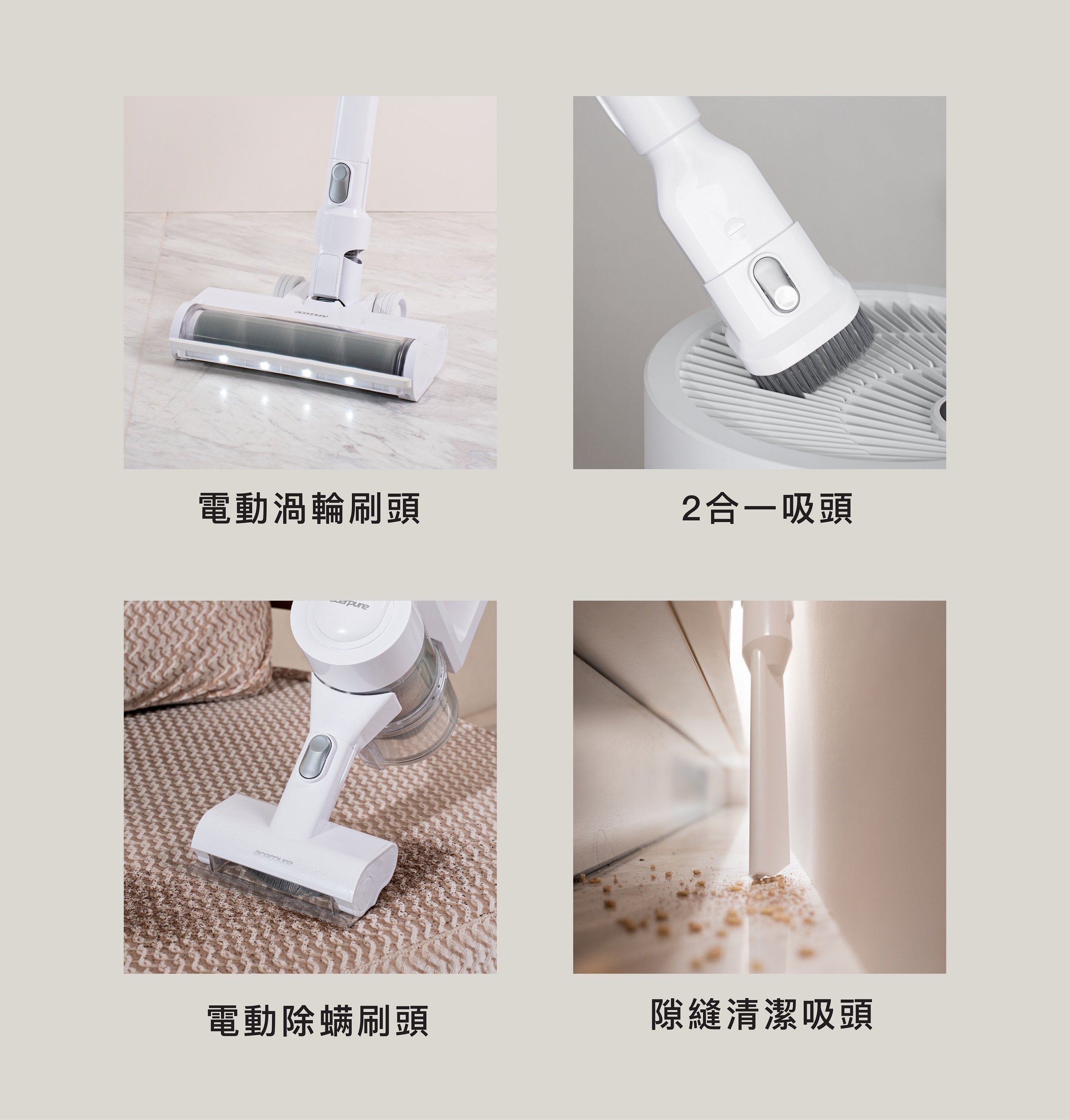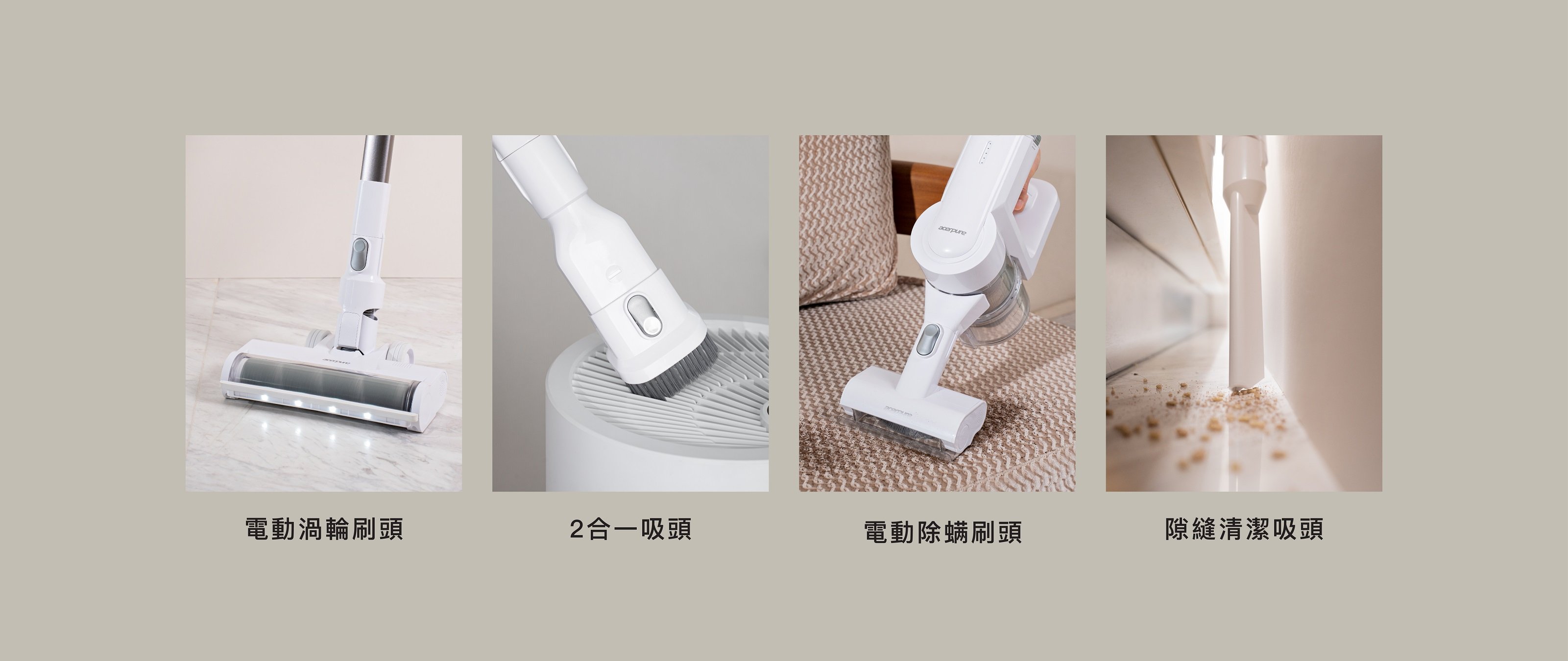 四款刷頭組合,地面髒污、縫隙灰塵以及塵蹣,通通一網打盡
