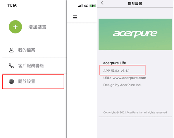 Acerpure Life產品連線優化回饋中心